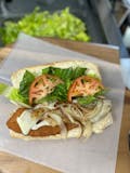 Served on pita bread with tzatziki sauce, lettuce, tomatoes, and onion.
